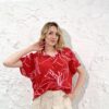 Camisa manga japonesa en simil lino. Dos bolsillos, mangas con puño rebatido. Botones marmolados.