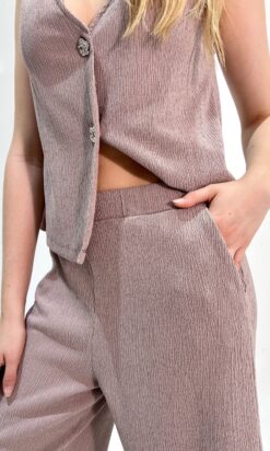 Pantalón palazao en textura bambula. Bolsillos en los laterales. Podés hacer conjunto con Top Clonney