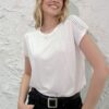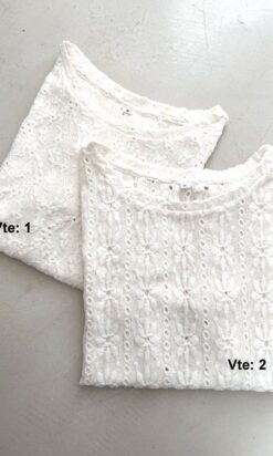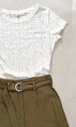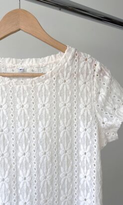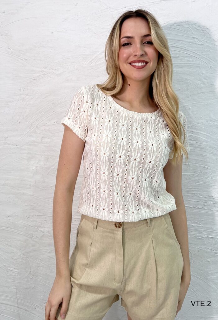 Remera mangas cortas cuello redondo en broderie elastizado.
