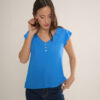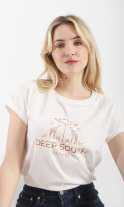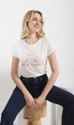 Remera en jersey algodón mangas cortas entallada con estampa central.