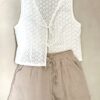Top textura bambula de punto escote V. Botones metálicos en forma de nudo. Podes hacer conjunto con *Pantalón Clonney