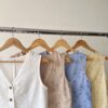 Top tipo chaleco en simil lino rayado. Botones marmolados. Podés hacer conjunto con *Pantalón PIETRO,